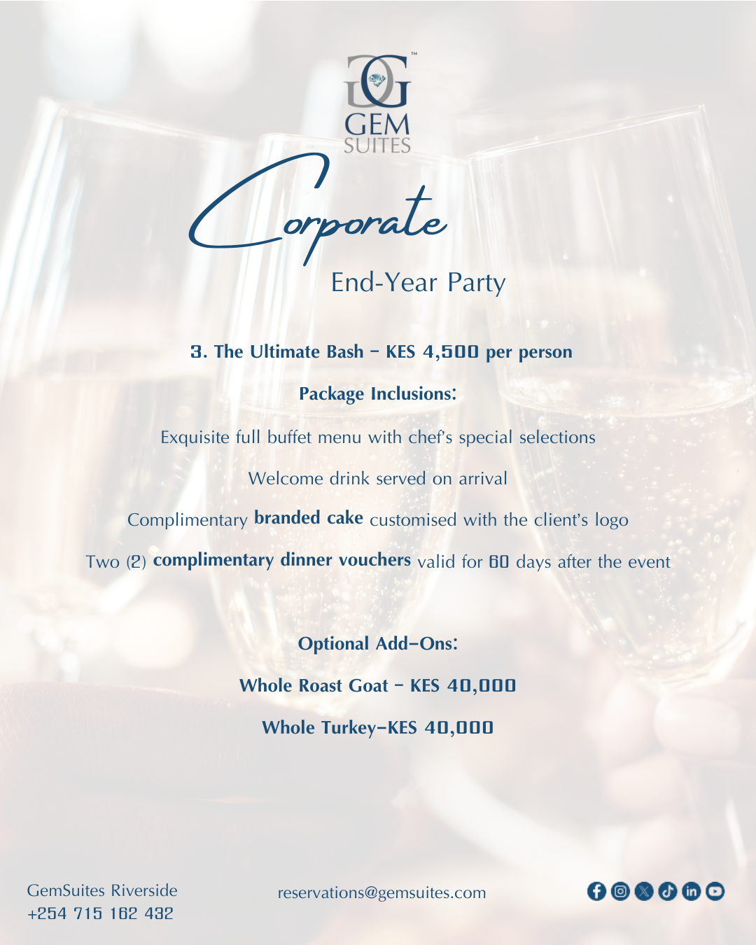 Our End-of-Year Packages at GemSuites Riverside combine elegant venues, exceptional cuisine, and warm hospitality — creating the perfect setting to reflect, reconnect, and toast to success.