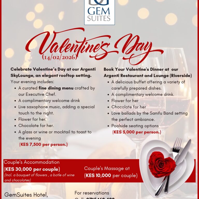Discover the epitome of elegance and convenience with our hotel suites, and one and two bedroom apartments at GemSuites Riverside. Nestled in the heart of Nairobi’s vibrant Riverside Drive, our meticulously designed hotel suites and apartments offer the perfect blend of modern amenities and serene living spaces. Whether you’re in the city for business or leisure, GemSuites Riverside provides a luxurious home away from home, ensuring a comfortable and memorable stay.